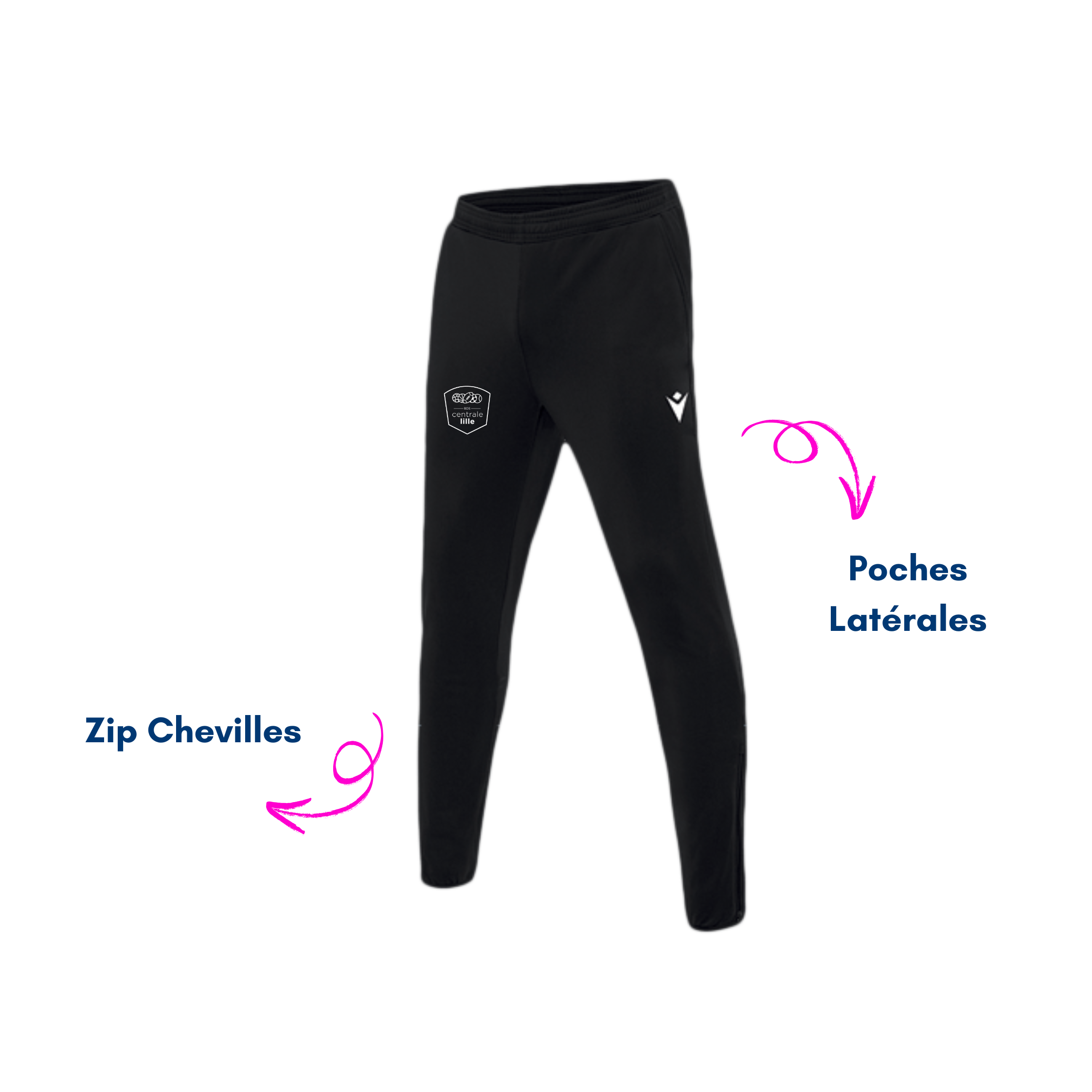 100% polyester de Macron conçu par le BDS de Centrale Lille et Epopey. Le jogging est personnalisé avec le logo du bureau sur la cuisse. Il est conçu avec une coupe ajustée et des zips aux chevilles.