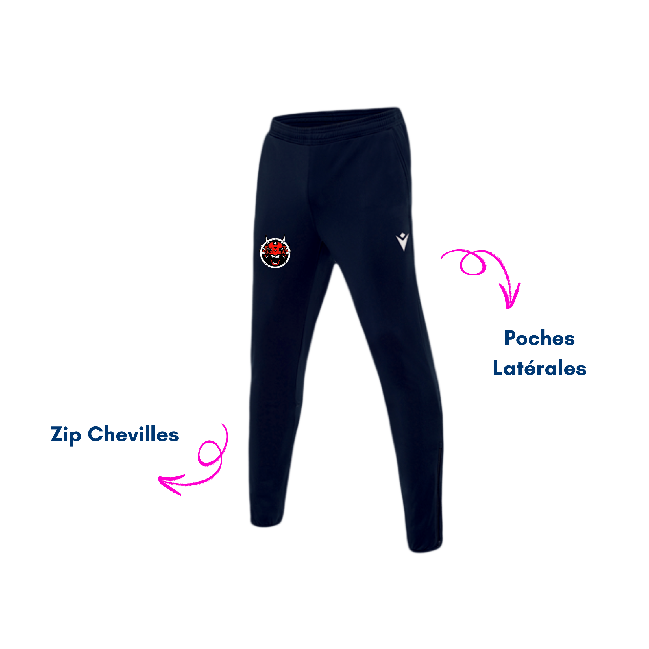 100% polyester de Macron conçu par le BDS d’IPSA Paris et Epopey. Le jogging est personnalisé avec le logo du bureau sur la cuisse. Il est conçu avec une coupe ajustée et des zips aux chevilles.