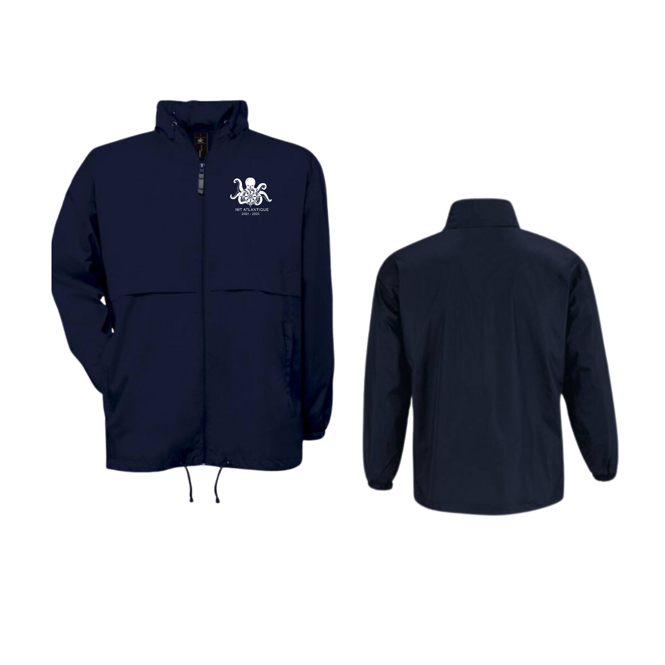 conçu par la Fédération IMT Atlantique et Epopey. Le coupe-vent est personnalisé avec le logo IMT Atlantique sur la poitrine. Il est conçu avec une capuche intégrée au col.
