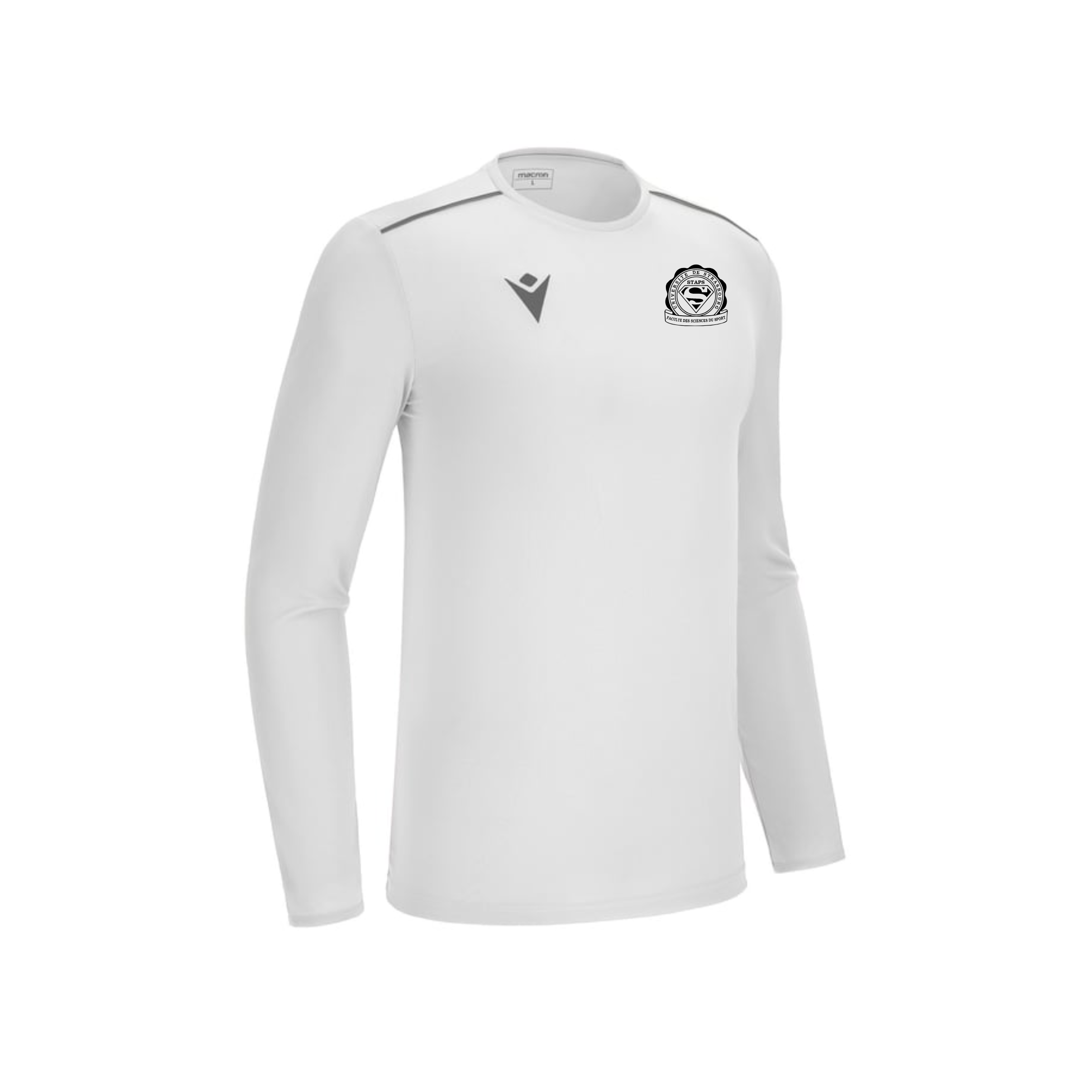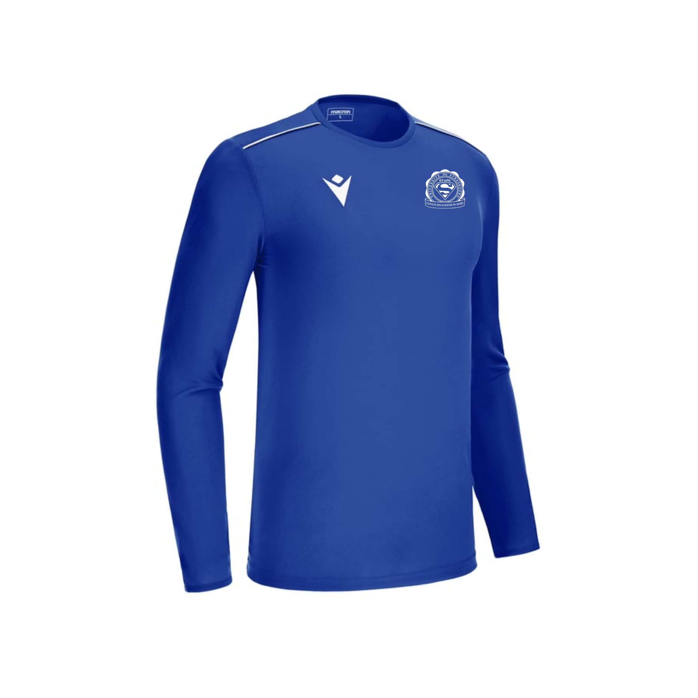 Macron conçu par le BDE STAPS Strasbourg et Epopey. Le maillot est réalisé avec le logo du BDE sur la poitrine.