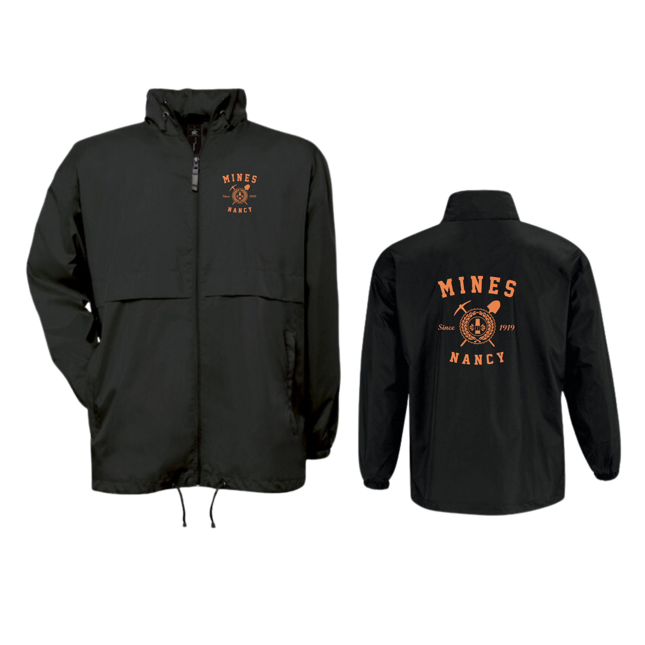 conçu par le BDE de Mines Nancy et Epopey. Le coupe vent est personnalisé avec le logo du bureau sur la poitrine et dans le dos